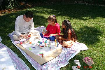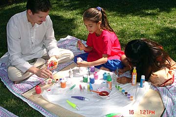 Four more Golden Gate Mission bhaktars painting for those who sponsored murthis.