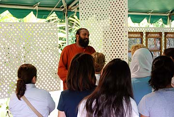 Yoginathaswami was their guide. Here he introduces them to the monastery in the Banyan Mandapam.