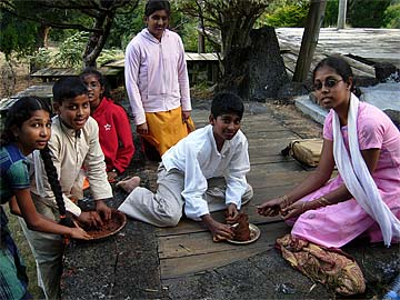 They really enjoyed this .... real fun. Each youth was given a bag of clay to bring home. They will be making their own small Ganesha with all their family involved in this activity...