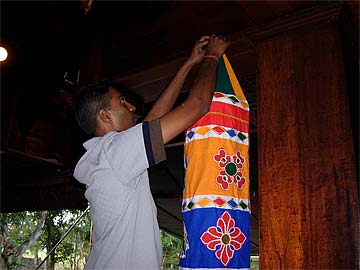 Vivek helping to decorate the Ganesha Mandapam.