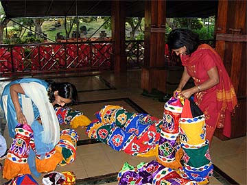 Kulamata Premila Manick and Anandi, sorting out the pairs of tombais .....