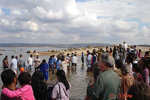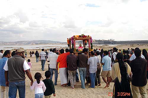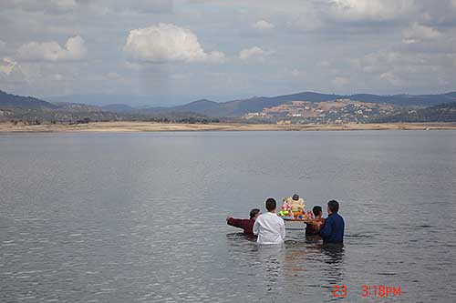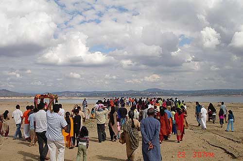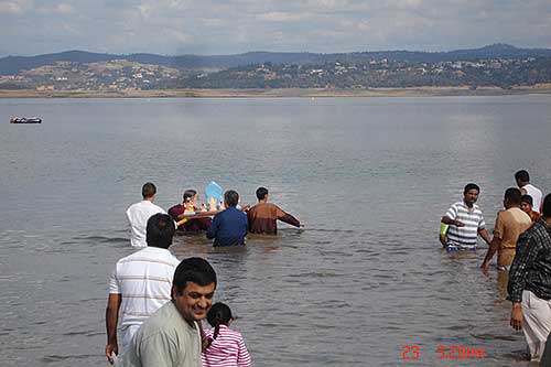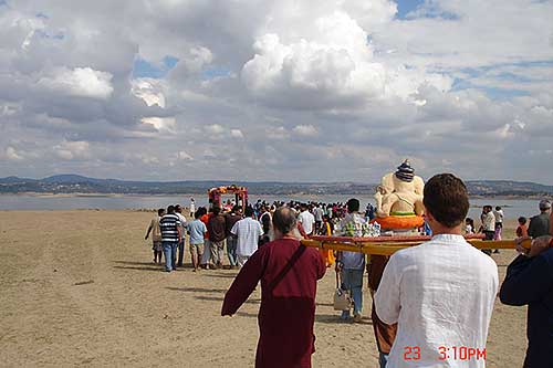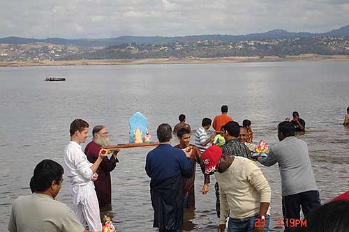 The Visarjana took place at Folsom Lake, northeast of Sacramento.