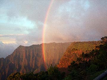 While there is still light, Sadhaka Nilakantha catches the bottom of this incredible nearly 360 degree rainbow... as the colors plunge into the famed Kalalau Valley