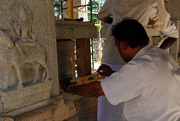 Selvanatha Sthapati fine tuning various parts of Iraivan.