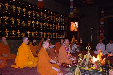 Bodhinatha's talk today started from the lesson of the day, about not getting bogged down in the conscious mind. He spirited spoke about gaining control over the conscious mind, needing to experience inner states and not just think about them. He said it was the natural of the intellect to either be a barrier to the soul or a tool of the soul. He spoke on desire from Gurudeva's very first book, Cognizantibility, also called Raja Yoga, which can be found in "Merging with Siva" where Gurudeva explained desire as a "false concept in relationship to corresponding objects." Bodhinatha said desire and the fulfillment of desire were based on the concept that we would be changing as a result, but in fact, "you are already that which you seek." Fulfilling desire doesn't bring you any closer because the essence of the soul always is as it is.