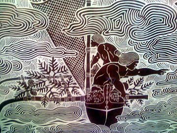 A Hawaiian canoe etching captured on that outing.