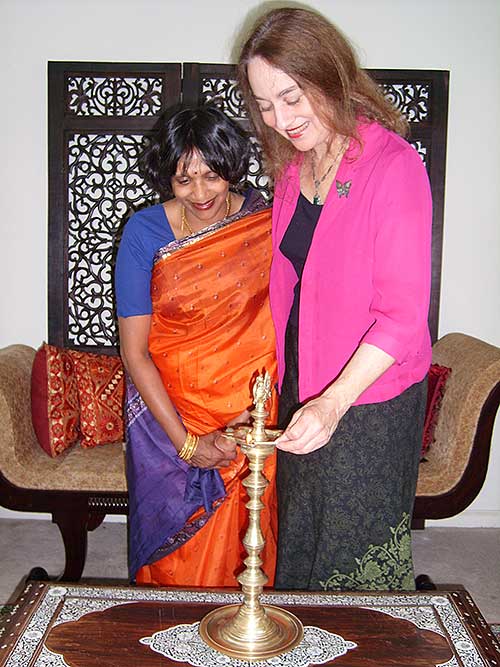 Our members in California have organized a big Autumn Bazaar to fund raise for Iraivan which will be held in Davis California on October 27th. Don't miss it if you can! Below is Sundari Katir with the Mayor of Davis, Susan Greenwald, at Sundari's home, giveng the Mayor a practice trial run of lighting the ceremonial lamp which the Mayor will do to open the event.
