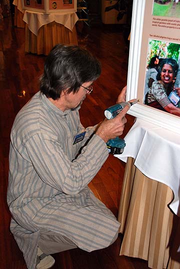 Adi Alahan puts together a display of Iraivan posters.