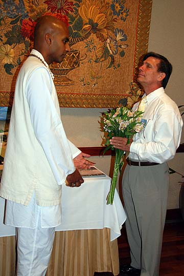 Dr. Thomas Yarema, who used to live on Kauai, shares a moment with Sadhaka Dandapani.