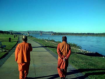 While we being a new phase at home, Bodhinatha is spending his last day in Memphis, visiting a temple there. Here are some photos of his morning walk by the Mississippi River.
