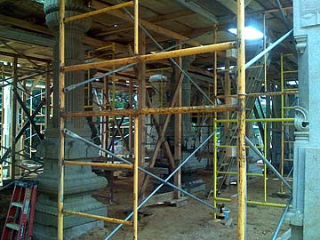The Siddhidata Kulam put in a major effort last phase and during Siddhidata day on the retreat to set up a complete second story platform-scaffolding over Iraivan.