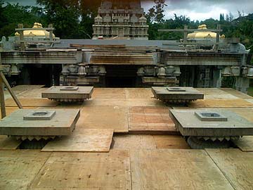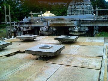 It provides a little sense of how Iraivan will be later when the actual roof stones are in place, cool, shady and quiet.