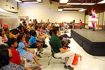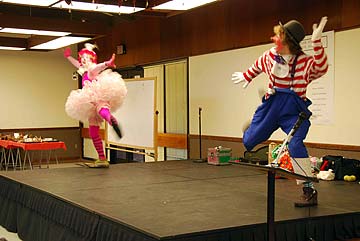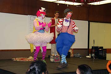 The MC: "When you go home tonight and tell your friends you saw two clowns bangra dancing today at the Indian Bazaar, they are not going to believe you."
