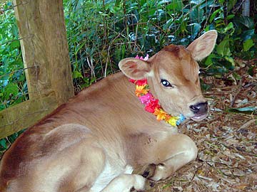 The new addition to the Monastery bovine family is full of energy and loves to run around the garden.