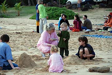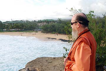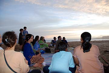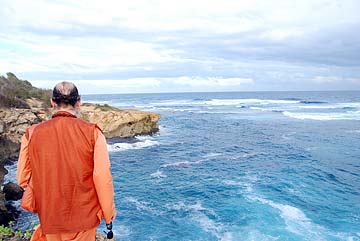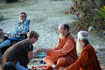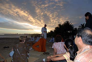 After intense pujas and classes, the devotees relax and enjoy satsang in the midst of Siva's natural ocean wonder world.