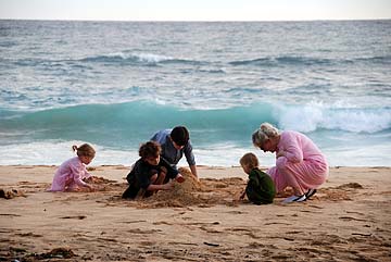 Picking up the thread of activities... Yesterday afternoon everyone went to Poipu for a late afternoon outing. The location is called "Ship Wreck Beach" at the far end of the island. Recent storms have brought us heavy seas, and the site is spectacular after a walk to the top of the bluff.