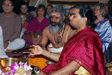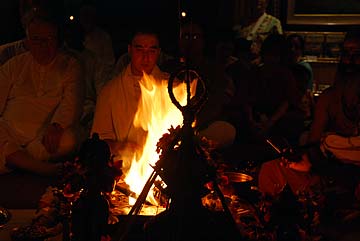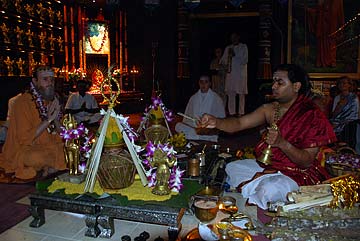 This morning's homa was conducted by two Sivachariyas from Canada.