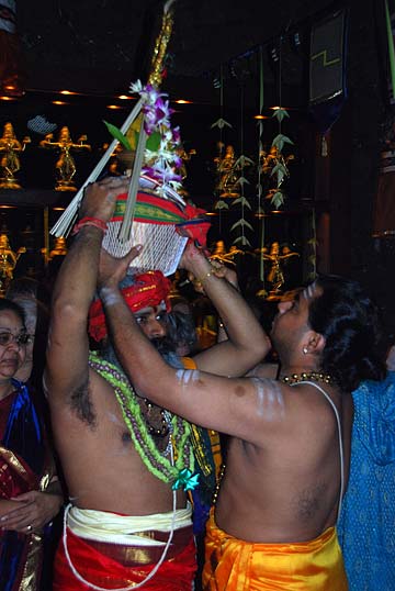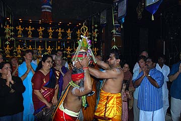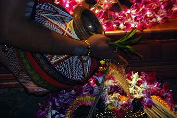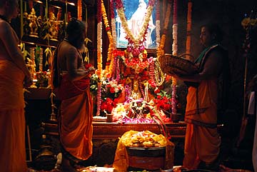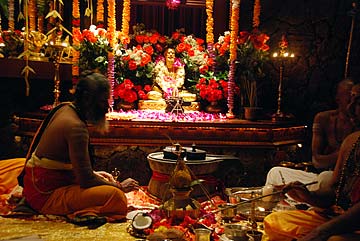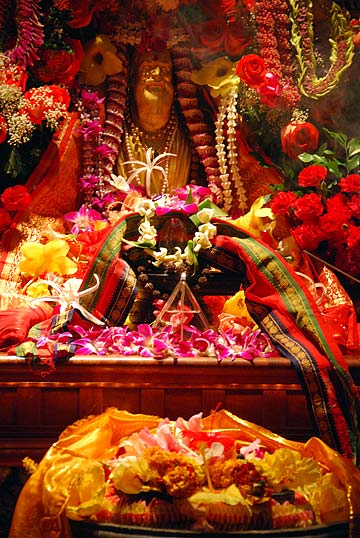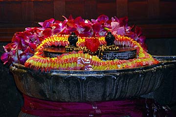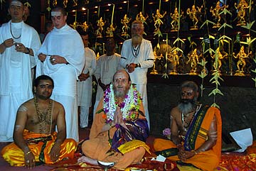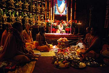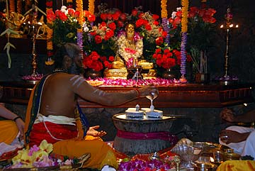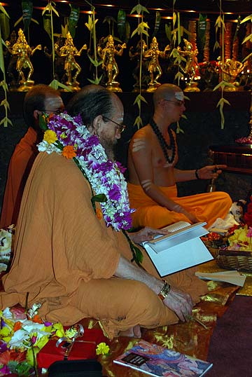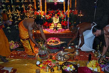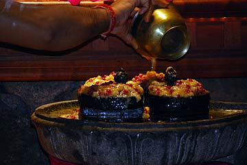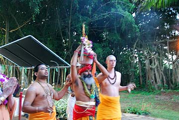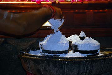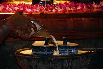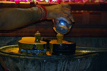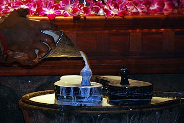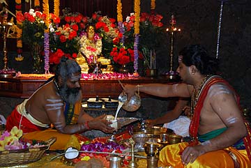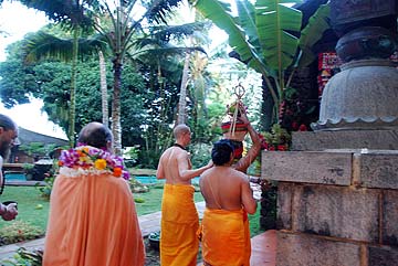 Our two priests with the help of some of the monks perform the abhishekam to Gurudeva's padukas.