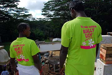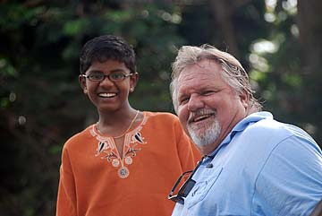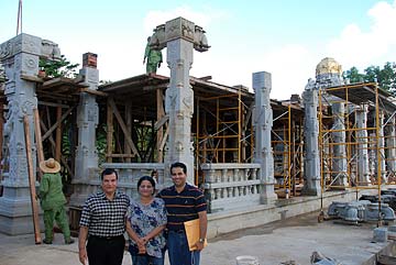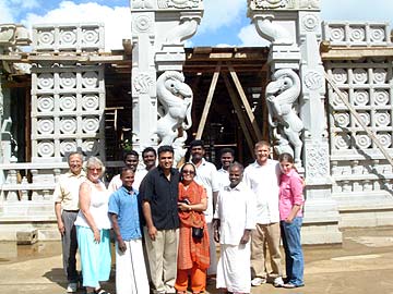 R/L Newlyweds, Michael and Sara from Florida. Michael is somewhat familiar with Hindu temple architecture and has helped sculpt Kalashas and capstones while also studying Stapatyaveda. Next is Sulochana and Deepal Mohan on their second visit since 2004; and Nancy Gardner who studied with Gurudeva back in 1972 in SF; and also Anupam Shah who heard about the temple through reading a friend's HT magazine. He made his first pilgrimage in February 07 and is very happy to be here again today. A warm welcome to you all!