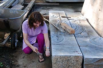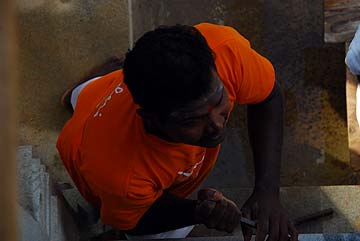 Stepping back to the last days of last phase and the stone lift during the retreat... pilgrims try their best to chip the stone.