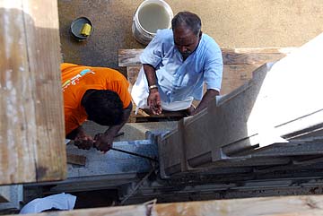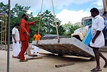 On top of the roof, the jalakam is moving into place