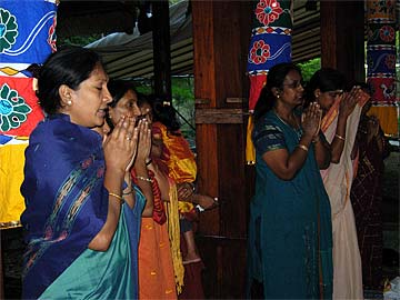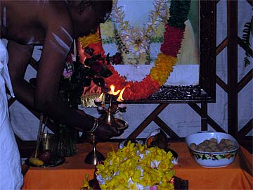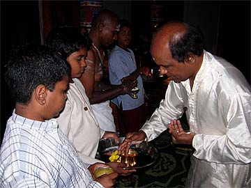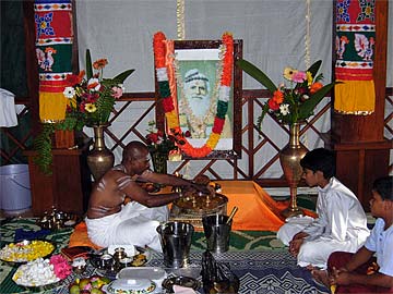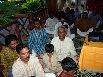 The 108 names of Gurudeva are about to be chanted by all the sishyas.