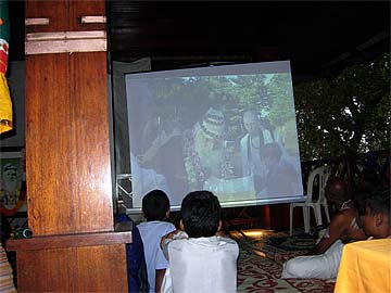 Then everyone was entertained by a video projection on Gurudeva, a nice movie from Kauai.