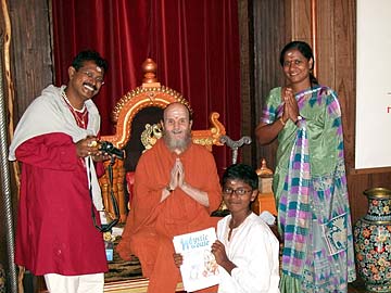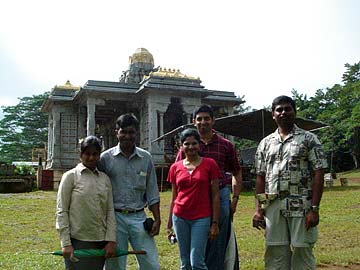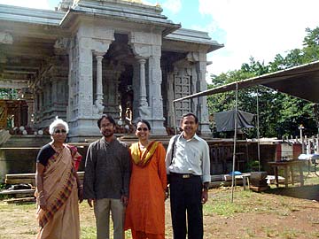 Subbarao, Swarnalatha, and Amarnath Ravva from San Francisco, originally from Andra Pradesh, India. On the left is Subbarao's mother, Ramadevi, who is visiting from Hydrabad, India. "It is unbelievable that such a beautiful handcarved stone temple is being constructed here on Kauai" commented Swarnalatha. "We definitely want to return for the Mahakumbha Abhishekam."