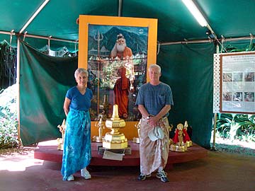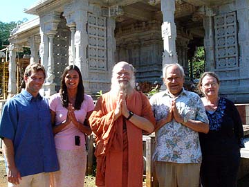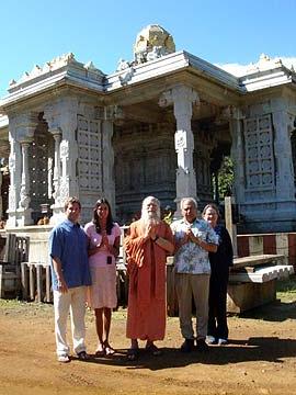 On the right is Nikki Nicholau and Bob Alstrum from Richmond, VA on a special tour of the Iraivan Temple. Also with them, visiting for the first time, are Pavan and Vasudha Chelpati from Michigan.