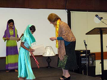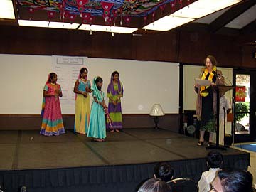 A few more late photos arriving from the Golden Gate Mission of their successful program in Davis. Here, Susan Greenwald, mayor of Davis makes a presentation to some young performers.