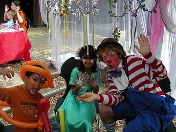 Gurudeva's old time devotees, the Burke family from Vancouver, Canada, who are "professional clowns" were kind enough to donate their time and expertise. Aubrey and his mother delighted the crowds and kids all day long.