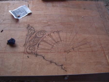 In Bangaluru, Selvanathan Sthapati is marking the actual size drawing for the ceiling of the Iraivan Raja Gopuram on plywood. This drawing will be later transferred onto the stones and the carving will begin.