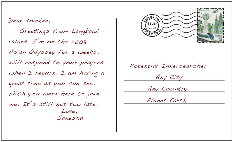 A space just opened up on our 2008 Asian Odyssey for 1 person (a male to share a double occupancy room with another male). Here's your chance to join Bodhinatha on this exotic adventure. A journey through ancient temples in Cambodia, mystical classes on meditation in Langkawi and Kerala, a devotionally drenched Thaipusam festival that is out of this world and a journey through south India to some of the most sacred temples in the world, joining in some of their grand sacred pujas.