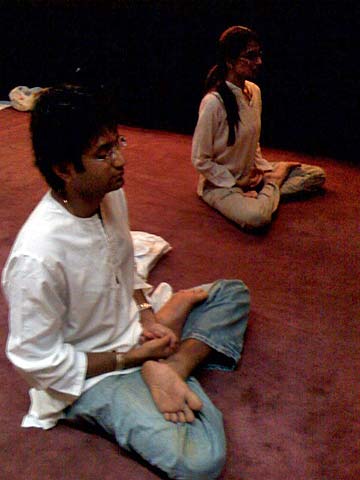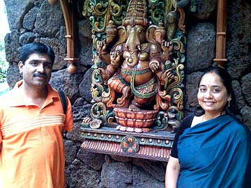 Newly weds Darma and Shivali both in padmasana in Kadavul Temple. It is their last day of pilgrimage here. And they came up early to meditate in front of Ganesha before catching their flight.
