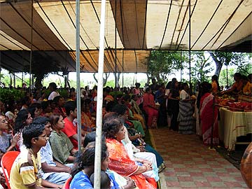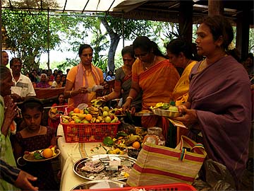 On the Mandapam steps, other ladies are taking care of offerings ...