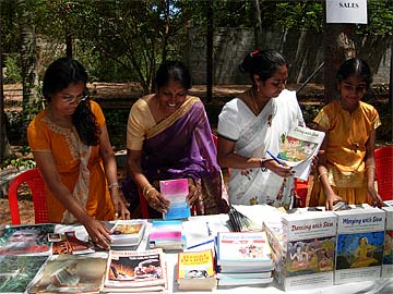 Our outside Himalayan Academy sales booth under the responsibilty of Veena, Premila, Kevina and Jambalini. Despite the scorching sun everyone happily performed their seva for that day.