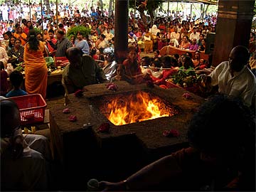 The Year 2007 culminates with a grand Ganesha Homa at the Spiritual Park of Mauritius this month of December. Sishyas are there early to help with decorations and attending other related activities for this monthly ceremony.