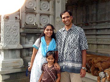 "Sujatha and Sastry Sonti and their young daughter Anisha are here visiting during the ten day Tiruvembavai Festival with the most important day of the ceremony being the special homam and Ardra Abishekam to Siva Nataraja on December 24th."