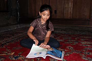 Sastry and Sujatha Sonti with their daughter, Anisha, from California were among our guests today. They had some wonderful questions for Bodhinatha, and Anisha was most fascinated by our "What Is Hinduism?" book.