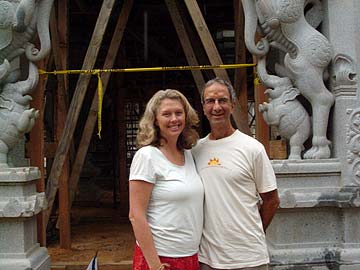 Visiting for the second time, here are Jeff and Sally Smith, now newly weds and close friends of devotees Shakti and Dasam Mahadevan of San Diego.