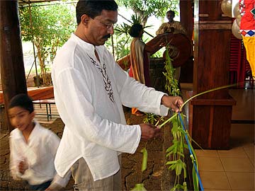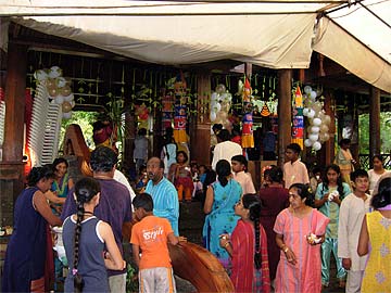 Early morning the sishyas were there to set up the Mandapam...