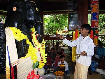 The celebration started with a simple arati to Lord Pancha Mukha Ganapati. ....