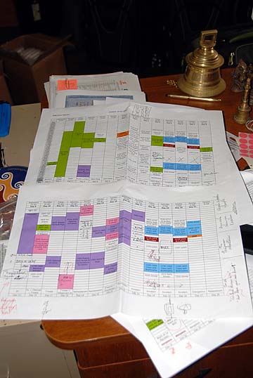 Sadhaka Dandapani has been working many, many hours over time. Here is his Excel spread sheet containing a master itinerary, with an hour-by-by hour detail for every day of the trip.
