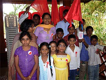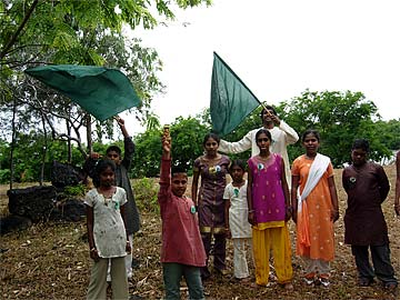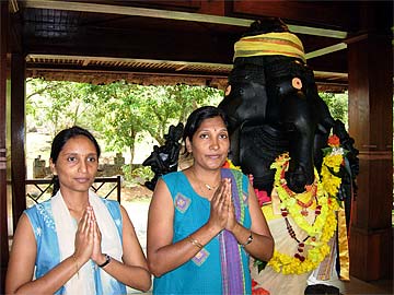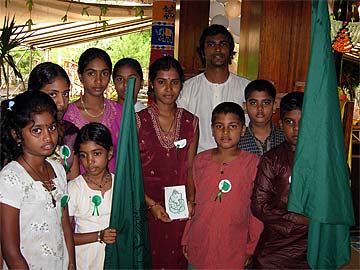 Team Green happily showing their Ganesha hidden in a tree near the Muruga Mandapam.