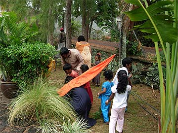 The Pancha Ganapati celebration continues at the Spiritual Park. Here are the participants for Team Red. After a quiz on Satguru's Bodhinatha's Saivite Hindu Religion Course Book V and a tough puzzle on a Ganesha painting, the youth accompanied by some youth facilitators are ready to go for a treasure hunt....
