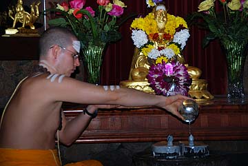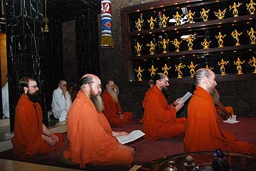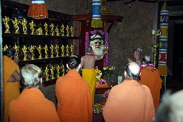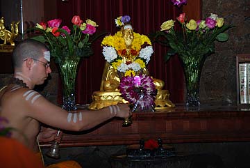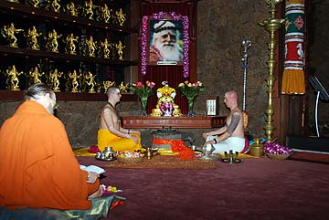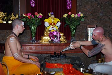 Yogi Jivanandanatha and Sadhaka Nilakantha perform today's puja.