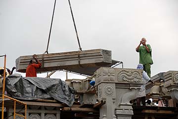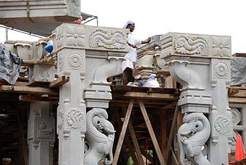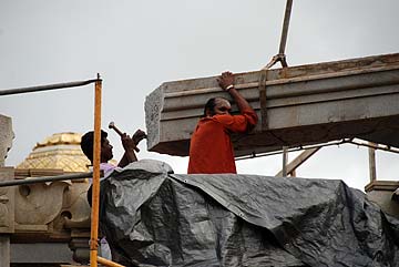 The Siddhidata Kulam provide the logistics for the lift, while the silpis focus on precise placement.