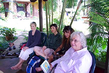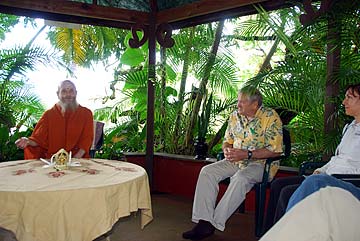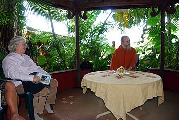 Bodhinatha signs books and talks with guests who pose many interesting questions.