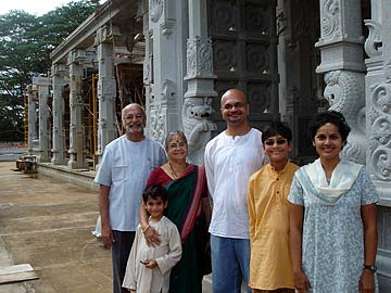 Following a tour the Iraivan Temple, they posed for a group photo. From right to left - Govind and Tara Shenoy with six year old Kathan; Krishna and Damodar Shenoy and their other son, 12 year old Kedar Shenoy.