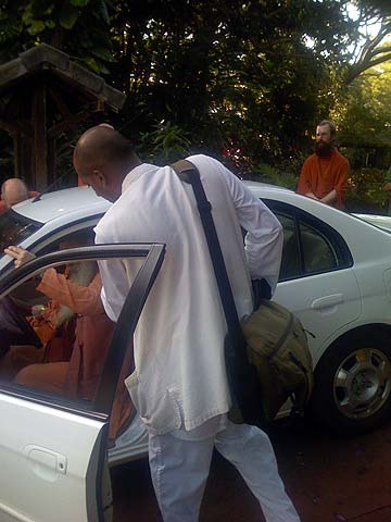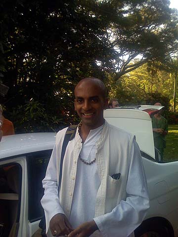 And from Johannesburg, S. Africa are a lovely group from the Bodhgayashanti Ashram where their Brahmacharis take lifetime vows. Here are Denicia Samuels, Virusha Kalideen, Jayendren Reddy, Kuvem Govender, Thevashen Naidu, Subash Samuels, and Balram Chetty.